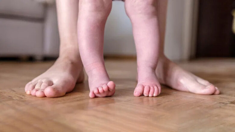 Mund të ecë vonë, me këmbë të përkulura dhe rritje të çrregullt