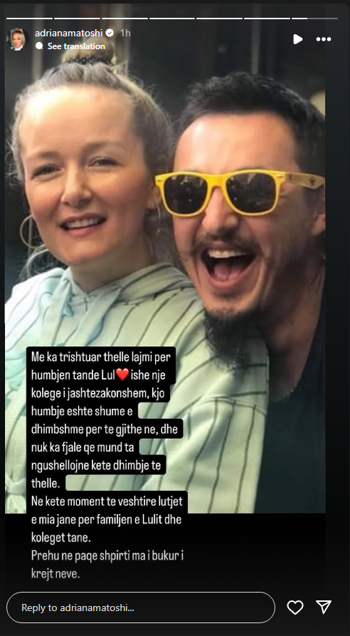 Vdekja në moshë të re e aktorit Lulzim Rexha ka pikëlluar të gjithë kolegët e tij.Edhe Adriana Matoshi me anë të një fotografie e ka kujtuar si një koleg të jashtëzakonshëm,