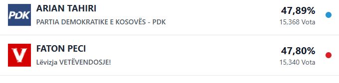 Rezultatet e KQZ-së tregojnë një dallim të ngushtë prej 28 votash mes Tahirit dhe Pecit.