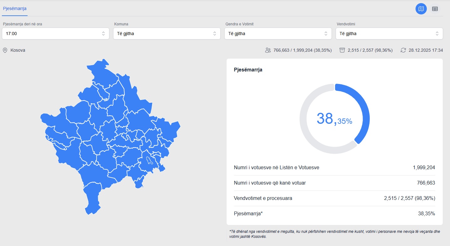 Deri në orën 17:34, sipas të dhënave të KQZ-së, del se kanë votuar 766,663 qytetarë.