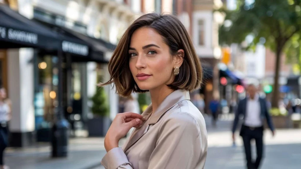 - Bob i drejtë në gjatësi të nofullës për një pamje elegante dhe minimale