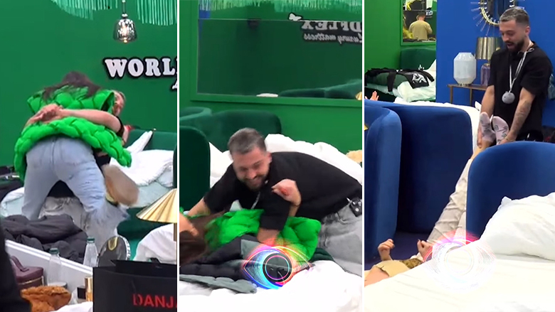 Më pas, duke e ruajtur të njëjtin energji të lartë, ai vazhdoi me Olen, të cilën e tërhoqi zvarrë drejt dhomës së gjumit, duke nxitur të gjithë banorët që të zgjojnë energjinë dhe të shijojnë ditët e fundit të lojës.