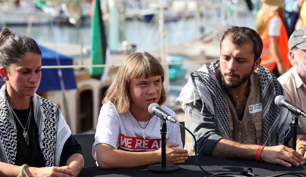 Aktivistja për klimën Greta Thunberg iu bashkua një flote anijesh të ngarkuara me ndihma për Gazën, ndërsa ato u nisën nga Barcelona të dielën, me qëllim thyerjen e bllokadës detare të Izraelit dhe dërgimin e ushqimit dhe furnizimeve të tjera humanitare në Gaza.