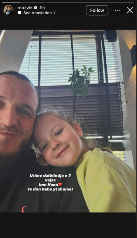 “Urime ditëlindja e 7-të vajza ime Hana. Të do baba yt shumë”, ka shkruar Mozziku.