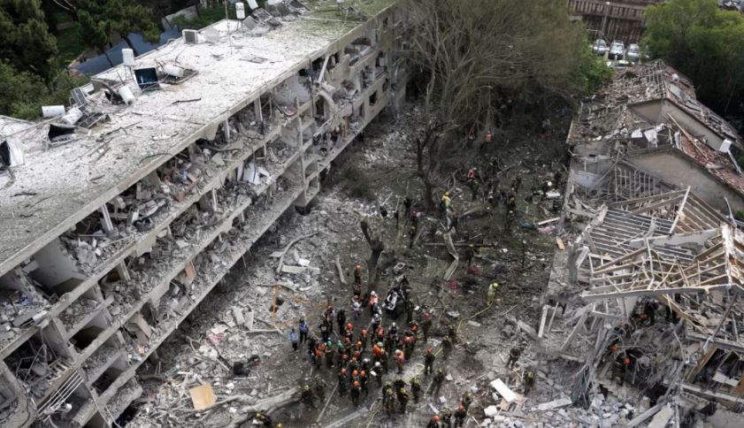 Televizioni publik KAN 11 transmetoi pamje të një ndërtese të shkatërruar, e rrethuar nga grumbuj rrënojash, për të cilën tha se ndodhej në qendër të Izraelit, pas dy valëve të raketave të lëshuara drejt Izraelit rreth orës 07:30 të mëngjesit.