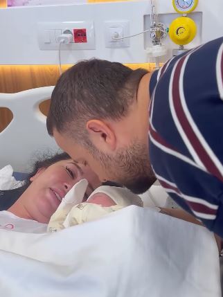 Në pamjet e publikuara nga klinika ku ka lindur artistja, Dafina shihet e mbushur me emocione dhe lot gëzimi, teksa përqafon për herë të parë foshnjën së bashku me partnerin e saj, Kreshnikun.