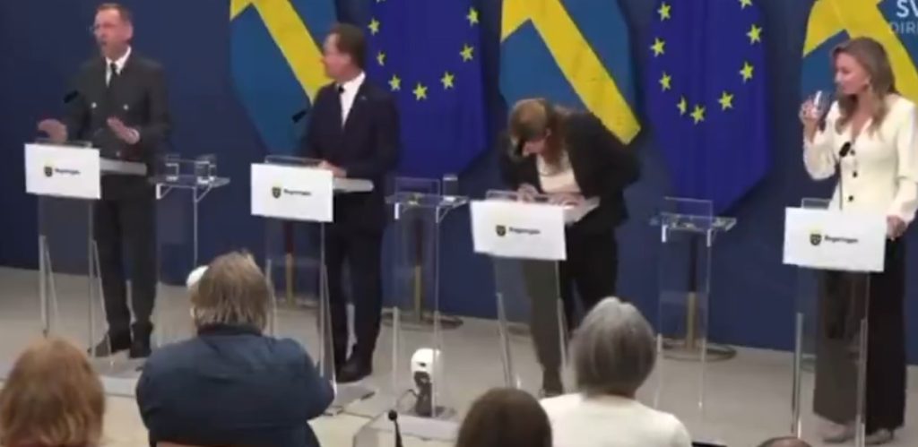 Gjatë një konference për shtyp në prani të kryeministrit Ulf Kristersson dhe anëtarëve të kabinetit, Lann humbi ndjenjat dhe u rrëzua, duke goditur kokën në podium.