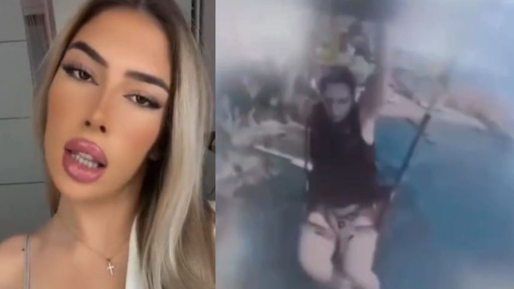 Pamjet janë kapur nga kamera e sigurisë ndërsa shihet 19-vjeçarja, që duket sikur po kalon momente paniku, e cila fillimisht hoqi jelekun që e mbante të lidhur me parashutën dhe më pas doli nga rripat e sigurimit të vendosur rreth këmbëve të saj, duke bërë që të binte nga lartësia.