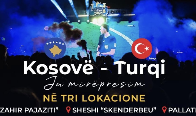 “Prishtina gati për spektakël. Ndeshja Kosovë – Turqi do të transmetohet në ekrane gjigante në tri pika në kryeqytet; në sheshin “Zahir Pajaziti”, në sheshin “Skënderbeu” dhe te Pallati i Rinisë.
