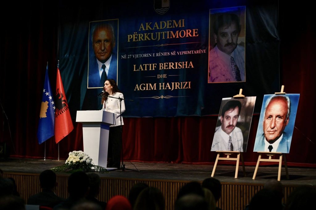 Presidentja e Kosovës, Vjosa Osmani, ka përkujtuar përvjetorin e 24 marsit 1999, duke nderuar Profesor Latif Berisha dhe Agim Hajrizi, së bashku me nënën e tij dhe djalin e vogël Ilirin, të vrarë nga regjimi i Serbisë.