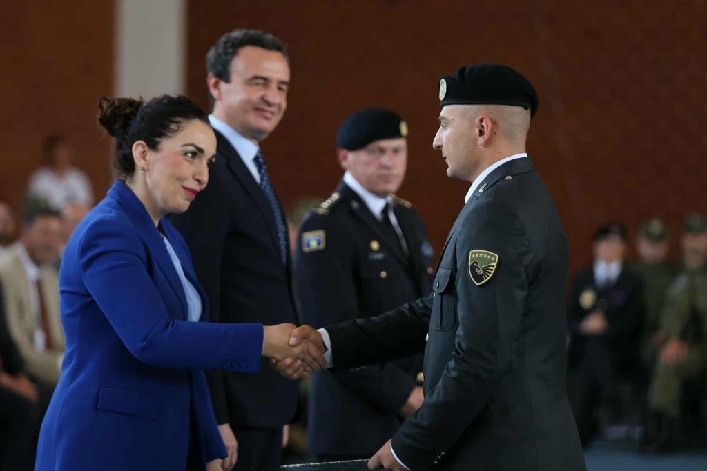 Në një ceremoni solemniteti dhe krenarie, kadetët e rinj të Forcës së Sigurisë së Kosovës dhanë betimin e tyre për t’i shërbyer vendit me nder dhe përkushtim. Pamjet nga ceremonia, të mbushura me emocione dhe simbolikë të lartë, shfaqin momentet kur kadetët betohen përpara flamurit të Kosovës dhe prindërve krenarë.