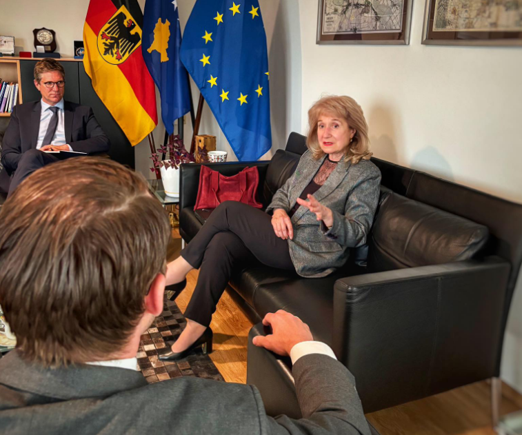 Kryetarja e Dhomave të Specializuara të Kosovës, Ekaterina Trendafilova, ka zhvilluar një vizitë në Ambasadën Gjermane në Prishtinë, ku është mirëpritur nga përfaqësues të kësaj ambasade. Lajmi është bërë i ditur nga vetë Ambasada Gjermane përmes një njoftimi publik.