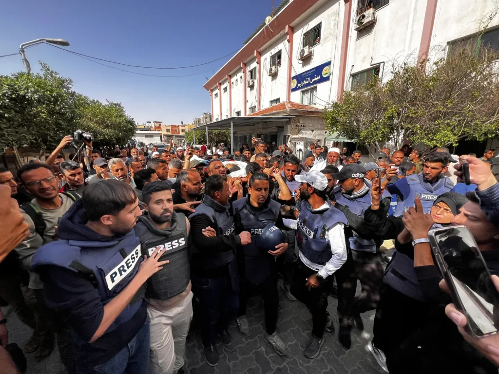 Ai i identifikoi gazetarët e vrarë si Abdul Rahman Al-Abaadela, Khaled Abu Seif, Azeez Al-Hajjar, Ahmed Al-Zaytani dhe Nour Qandil.