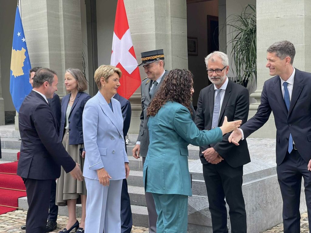 Presidentja e Republikës së Kosovës, Vjosa Osmani, është pritur sot nga Presidentja e Konfederatës Zvicerane, Karin Keller-Sutter, në Lohn Manor, rezidencën zyrtare të Këshillit Federal të Zvicrës. Ky takim është pjesë e vizitës shtetërore që Presidentja Osmani po realizon këto ditë në Zvicër.