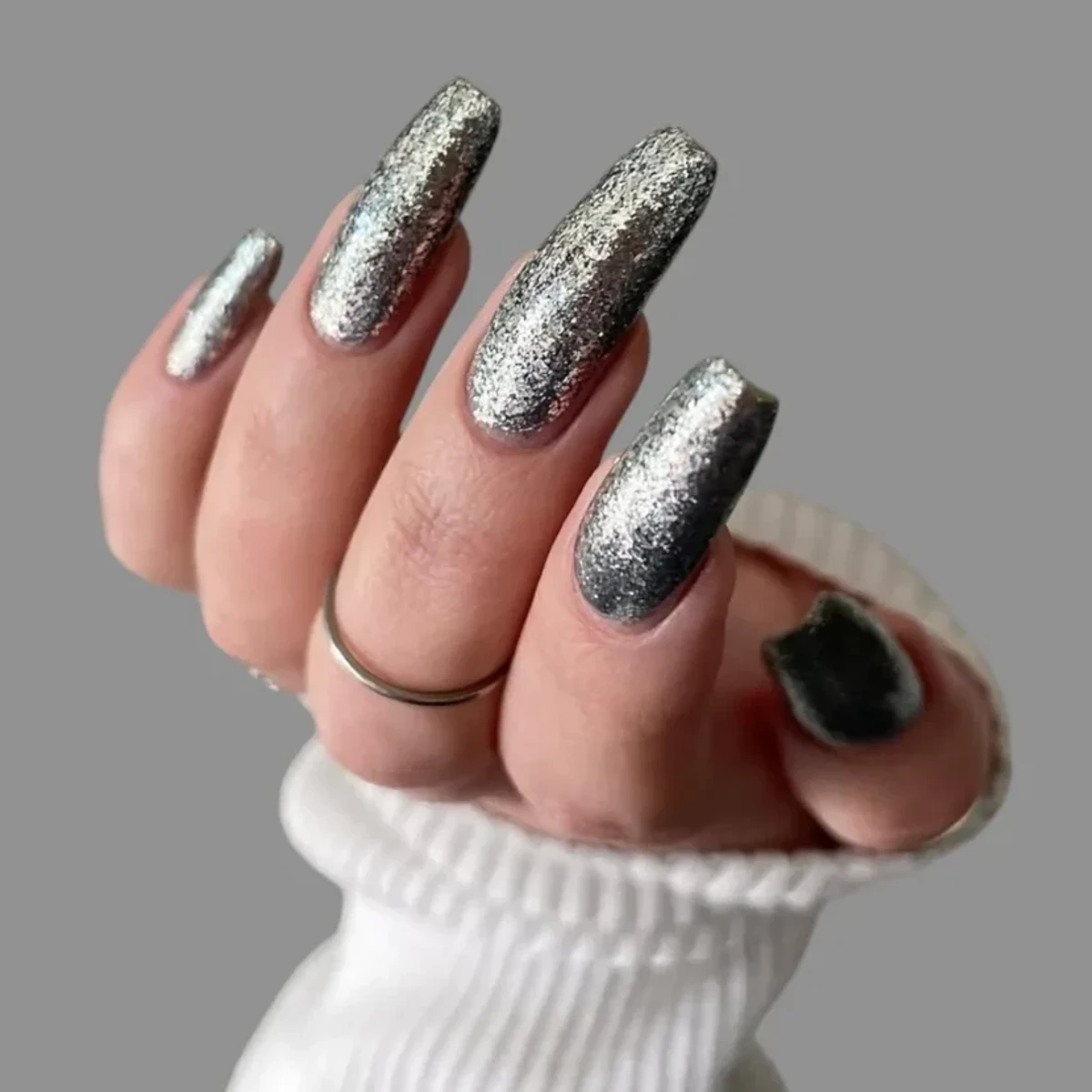 Manikyri metalik nuk është zhdukur kurrë plotësisht, por këtë vjeshtë ai vjen në një version më të butë dhe të ndriçuar me dritë të lehtë. Në vend të nuancave të ndezura dhe reflektuese, në trend janë satin chrome dhe sedefet e heshtura – llaqe që duken sikur janë mbështjellë me dritë të butë. Ngjyrat argjend e hirtë, shampanjë dhe ari i errët janë kthyer në të preferuarat e femrave që ndjekin modën, pasi bashkojnë modernen me klasiken – mjaftueshëm tërheqëse për t’u vënë re, por gjithmonë elegante.